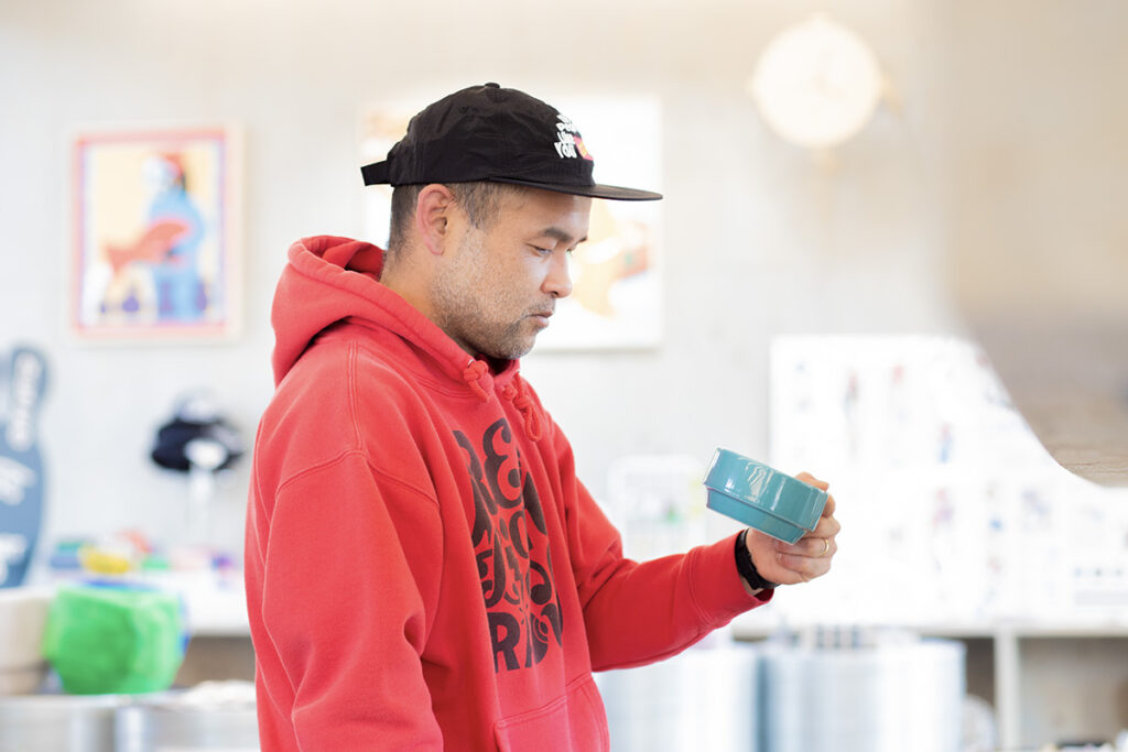「工芸って、どうしてもハードルを上げて難しくしてしまいがち。僕は逆に、興味の入り口をゴリゴリ一番下まで下げたいんです。公園なら赤ちゃんも来られるし、犬も連れてこられる。そうやって町に遊びに来てくれた人が、ついでに一枚ずつゆっくり器を見てくれたらいい」