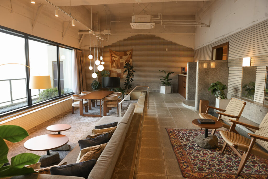 かつての大浴場を、そのままリビングルームにリデザインしたスイートルームをはじめ、カラオケルーム付きの部屋や和室を伴った部屋など、趣向を凝らした部屋の数々。