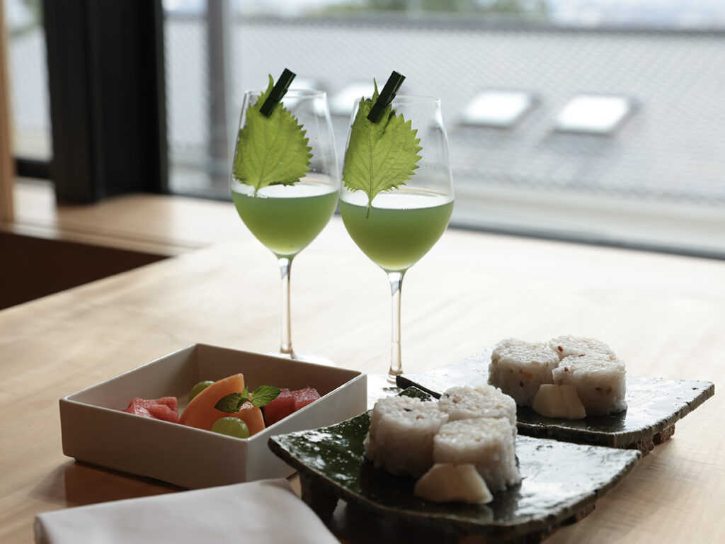 食後に訪れたのは、京都伏見の地酒をはじめ、日本酒に特化したメニューが充実した「BAR RYOZEN」である。オリジナルのカクテルで、ほろ酔い気分に浸りながら、檜の門をくぐり抜けた瞬間からの今日という1日をゆったりと振り返る。