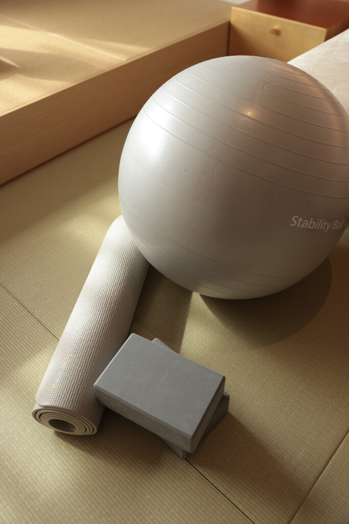 2枚目:「ウェルビーイングサンクチュアリルーム」にはヨガマットやフィットネスアイテムも備えられて。
