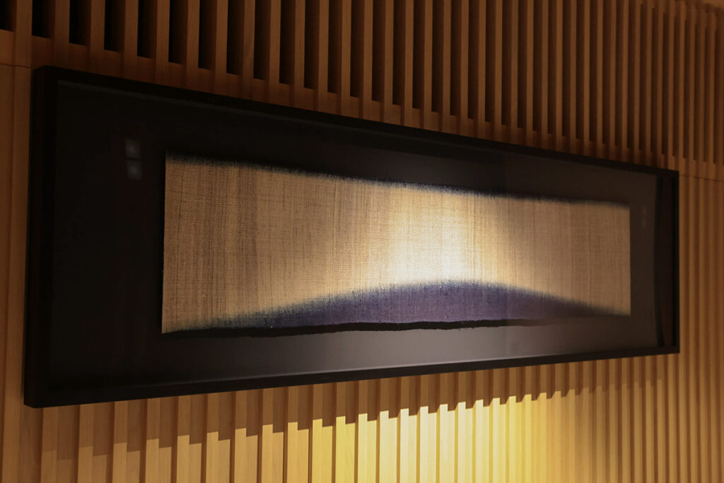 3枚目:京都在住の染織家・福本潮子の藍染めのアートをはじめ、館内には至る所に日本の美の化身が宿る。