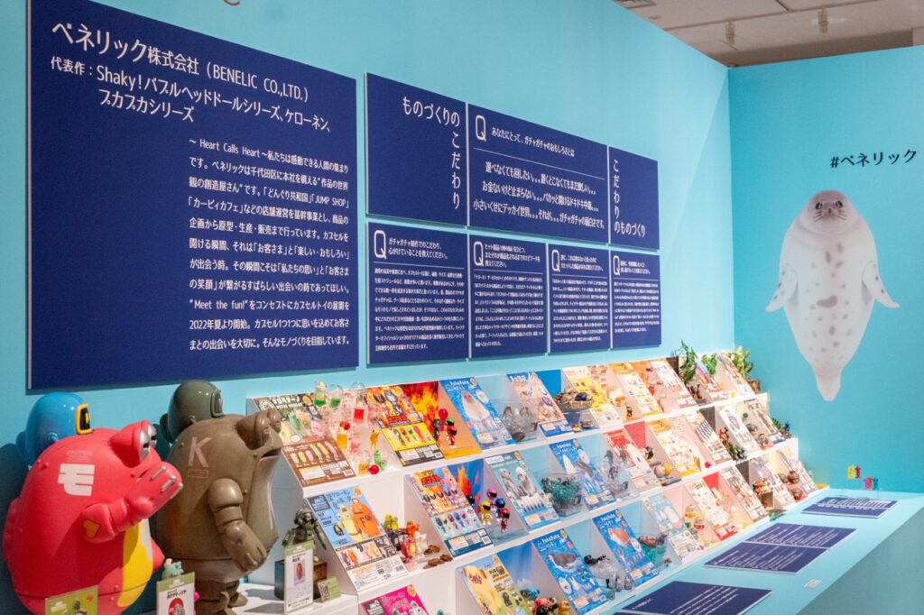 メーカーの展示エリアでは、各社のブースがずらりと並び、それぞれのメーカーごとの個性も比較できる。大流行した『コップのフチ子』の株式会社キタンクラブのブースや、『カリモク60』のミニチュア家具でおなじみの株式会社ケンエレファントのブースなど「あの商品はこのメーカーが作っていたのか!」という発見の連続だ。