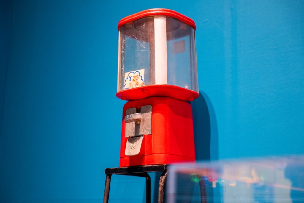 会場には、1965年当時のガチャガチャマシーンも展示されている。