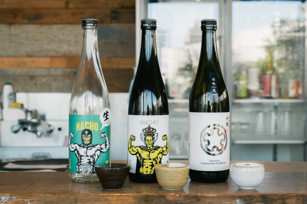 また、“米”つながりで日本酒にも力を入れており、和食と合わせて楽むことができる。おすすめの日本酒は「大盃MACHO(マッチョ)」シリーズで、雄マッチョ、ゴリラマッチョ、などユニークなラベルが並ぶ。遊び心ある名前の由来は、精米歩合からきているという。日本酒は通常60〜70%ほどまで米を磨くことが多いが、この酒はあえて80%も米を残している。その“マッチョさ”と、ボディビルダーの掛け声「切れてるよ!」を重ね、キレのある味わいを表現したネーミングだそうだ。