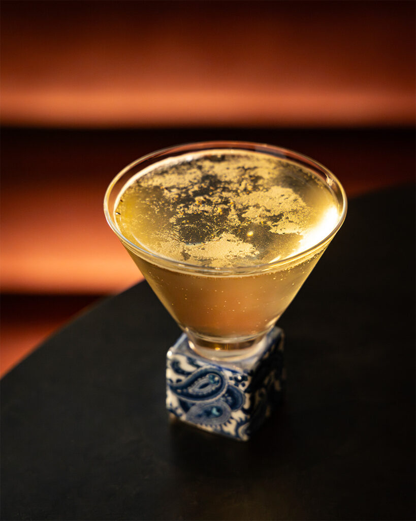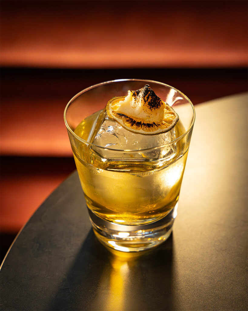 続く「シトラスウィスパー」は、ベアーズブックジンに東京産の山椒を合わせ、ヴェルモットやコワントロー、レモン、桜ビターが華やかに調和する。柑橘の爽やかさと山椒の繊細な刺激が溶け合い、鼻に抜ける余韻までも楽しめる。