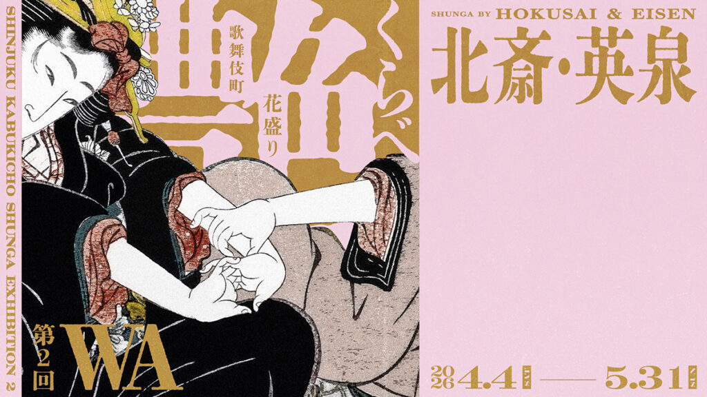 本展覧会は、タイトルにある通り、2026年4月の「『北斎・英泉 艶くらべ ー歌舞伎町花盛りー』 新宿歌舞伎町春画展WA 第2回」に先駆けた展覧会で、世界的な浮世絵コレクター・浦上満氏の全面協力のもと、江戸時代のポップカルチャーとして庶民から大名まで幅広く親しまれてきた「豆判(まめばん)春画」約100点が展示される。キュレーションは、Chim↑Pom from Smappa!Groupの林靖高が手がけ、手のひらサイズの画面に込められた、親密でユーモラスな江戸の人々の「愛」を伝える内容となっている。