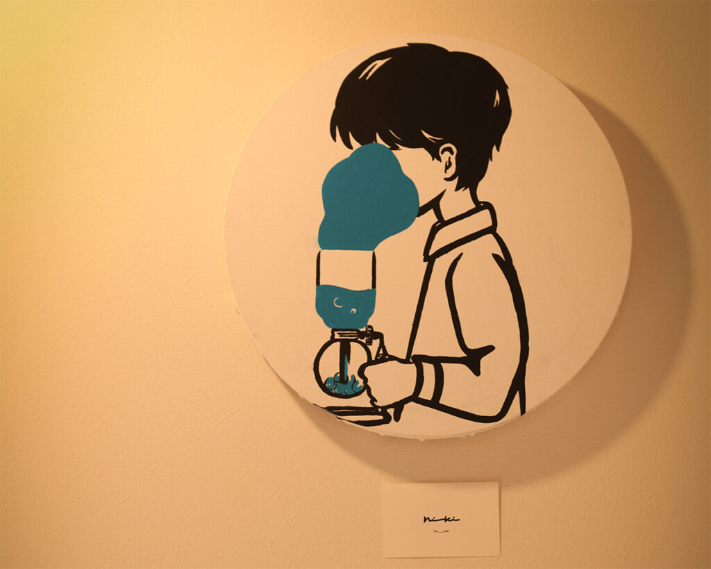 近藤氏の面影をよくとらえた店のロゴイラストは、アーティストNIKIに依頼。