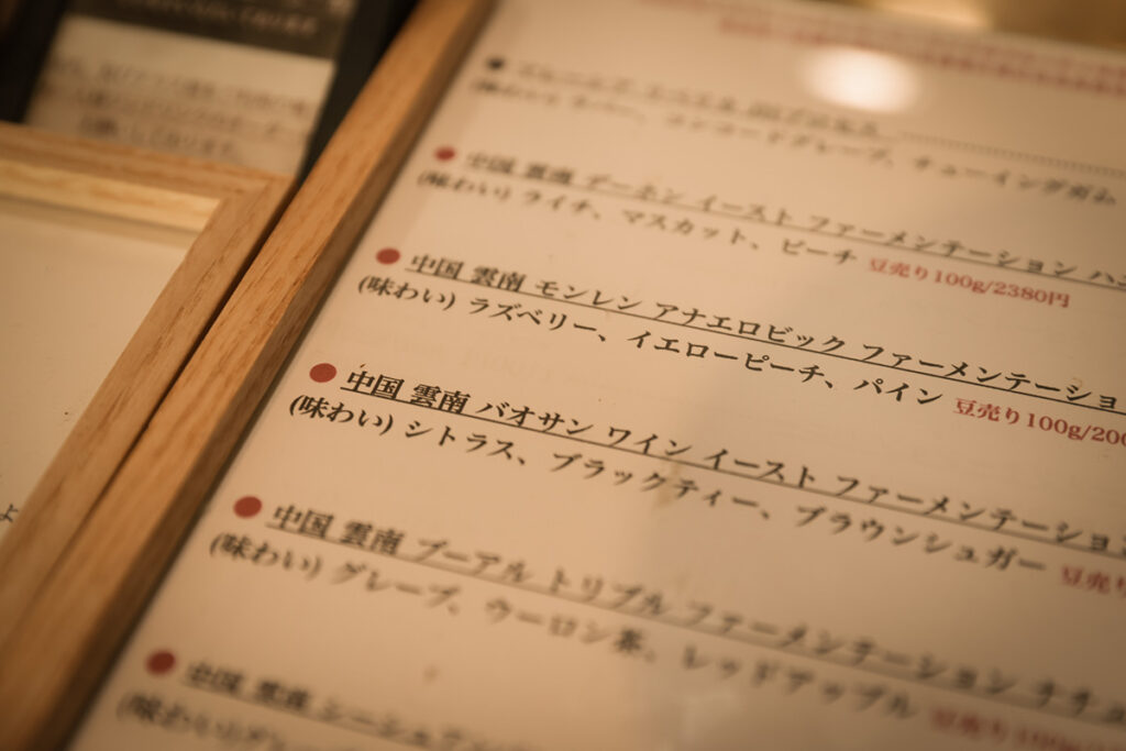 1枚目:取り扱うのはシングルオリジンのみ。サイフォンとハンドドリップとで抽出方法を選ぶことができる。