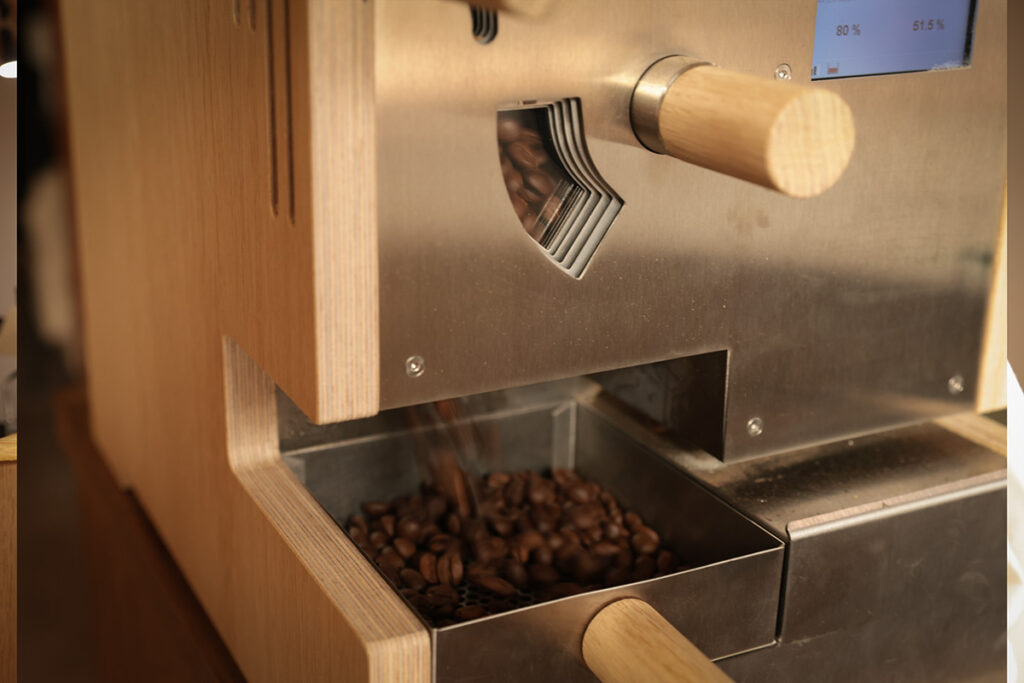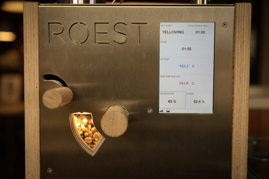 トライしたことの一つは、現在のスタイルに結びついたサイフォンによる抽出。これまでは仕入れた焙煎豆を用いていたが、理想に掲げた“誰もが美味しいコーヒーを淹れられる”ことを目指し、2024年からはコーヒーの自家焙煎もはじめた。「焙煎はまだ駆け出しのため、テストロースターを使っている」と近藤氏は謙虚に語るが、ノルウェー製の「ROEST」は知る人ぞ知る名品。棚の上に鎮座する小さなボックス型の焙煎機ながら、テクノロジーを駆使した温度調整機能やプロファイル設定の自由度の高さで注目されているマシーン。希少な豆を少量ずつ慎重に焙煎するベストパートナーといえる。