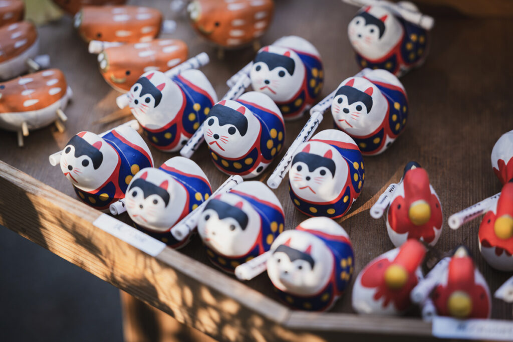 境内に愛らしいおみくじを見つけて。鳥居や灯籠、狛犬など至る所に江戸の年号が刻まれ、令和の現代の時空に江戸期の風情が優雅に立ち込めている。